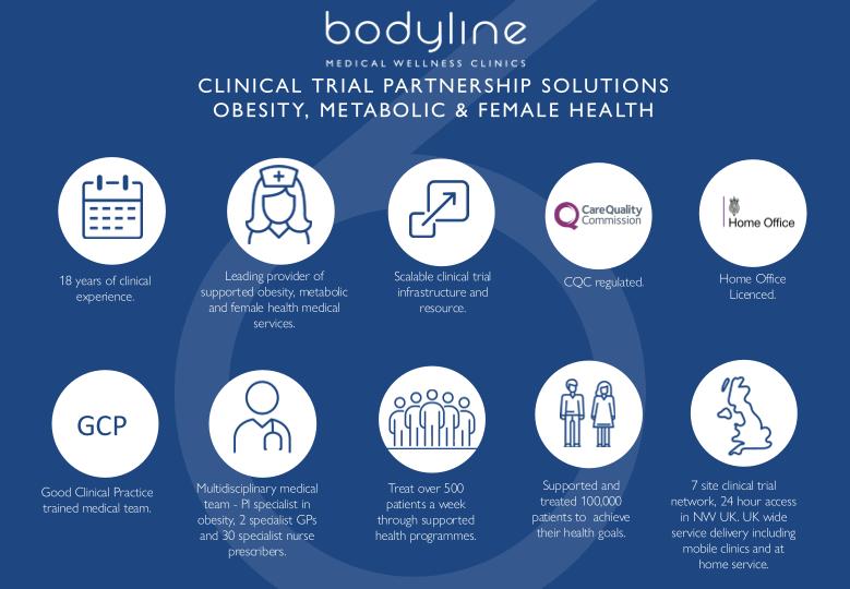 We are committed to advancing medical science and improving patient health outcomes through innovative clinical research in the areas of obesity, metabolic and female health. Operating a scalable network of seven fully operational clinics across North West England, Bodyline offers in-clinic and decentralised trial delivery models. Bodyline is a trusted UK partner for high-quality clinical trial delivery translating real-world clinical insight and therapeutic expertise from specialist clinical practice into protocol adhered, high-quality clinical trials and robust real-world data.