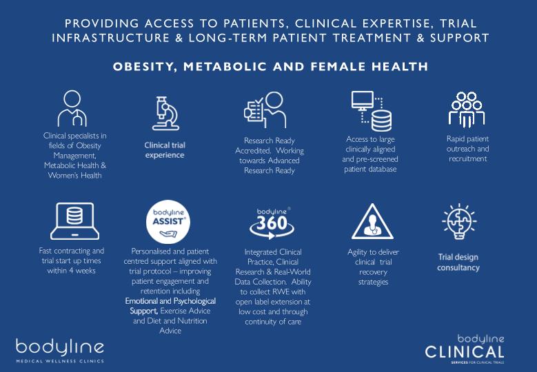 At Bodyline, we partner with pharmaceutical sponsors and CROs to deliver high-quality, patient-centred clinical trials across specialist therapeutic areas including obesity, metabolic health and female health. With nearly 20 years of specialist clinical service experience Bodyline uniquely combines clinical operational excellence and clinical trial delivery ensuring fast patient recruitment and high patient retention success.
